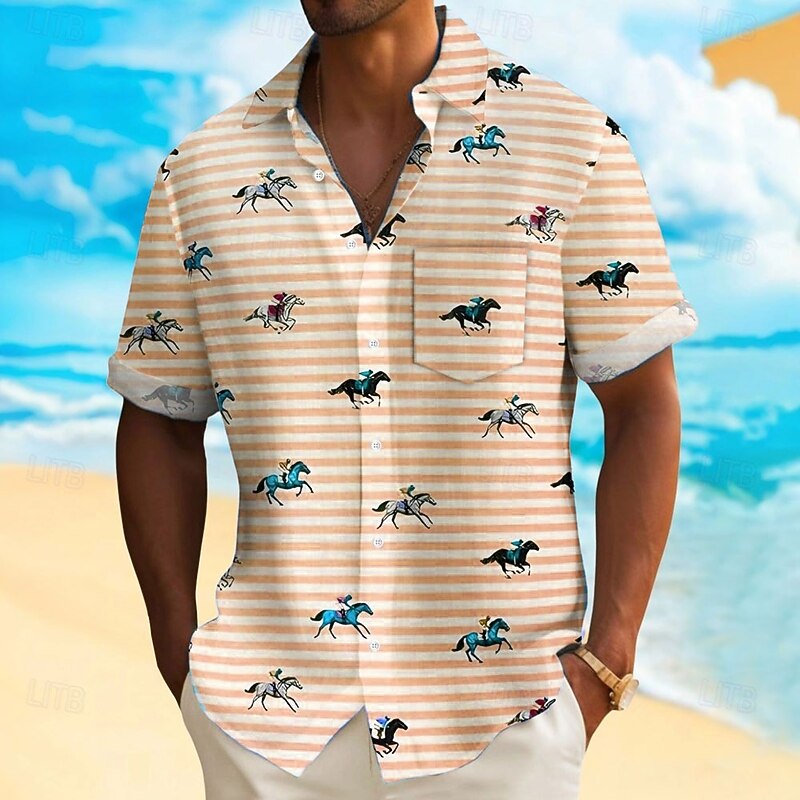 More information about Kentucky Derby Men's Striped Horse Racing Shirt Casual Shirt Button Up Shirt Short Sleeve Fashion Casual Vacation Holiday Streetwear Summer Spring Turndown 3D Print Collared Shirts Front One Pocket