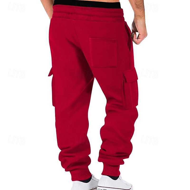 More information about Men's Fleece Pants Sweatpants Joggers Trousers Cargo Sweatpants Pocket Drawstring Elastic Waist Plain Comfort Warm Sports Outdoor Daily Fashion Casual Black White Micro-elastic