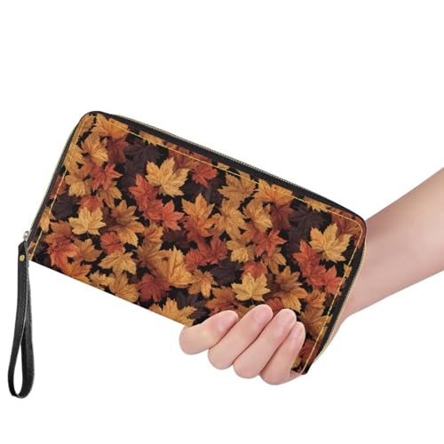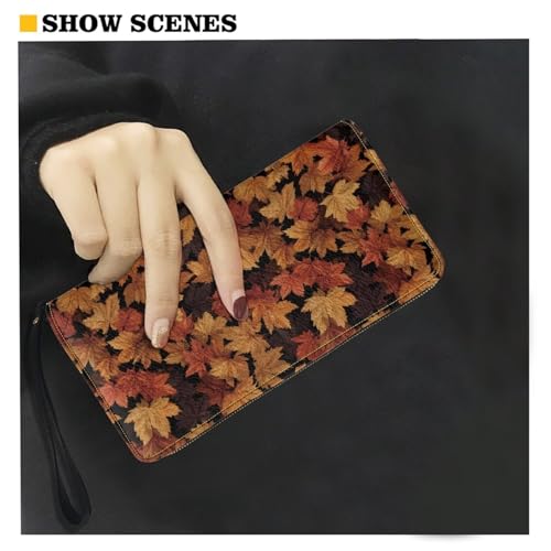 HOT ! Fall Ladies Long Wallet for Credit Card,Cash,Coin,Bill,Vintage Maple Leaf Print Zip Around PU Leather Clutch Wallet Stylish Waterproof Wristlet Purse for Travel Shopping Work