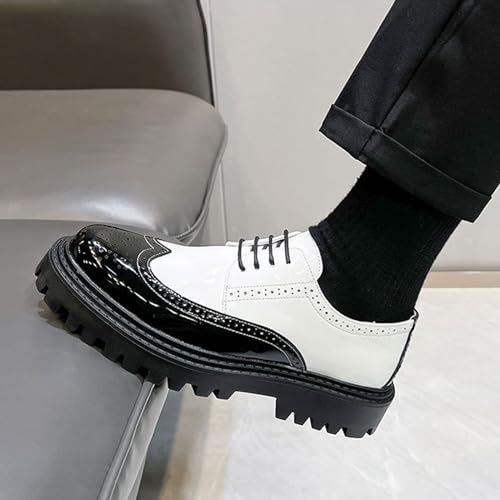 Men's Leather Lace up Platform Brogue Formal Oxford Shoes,Retro Lace up Color Matching Perforation Comfortable Round Toe Outdoor Party Wedding Night Club Height Increasing Loafers 6