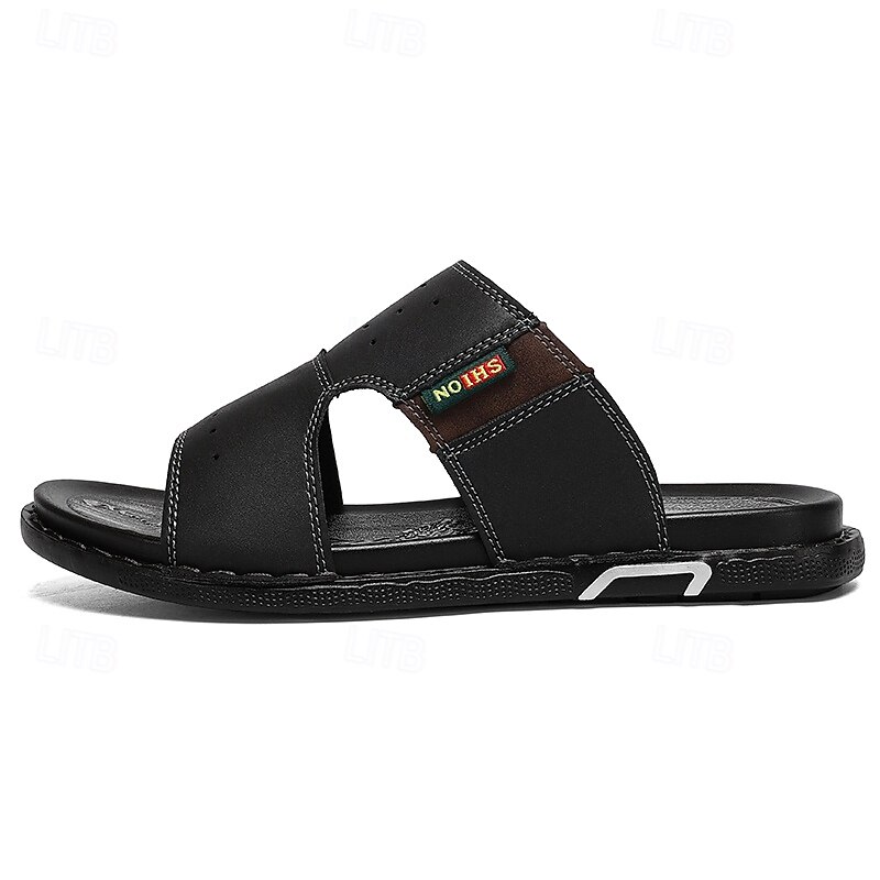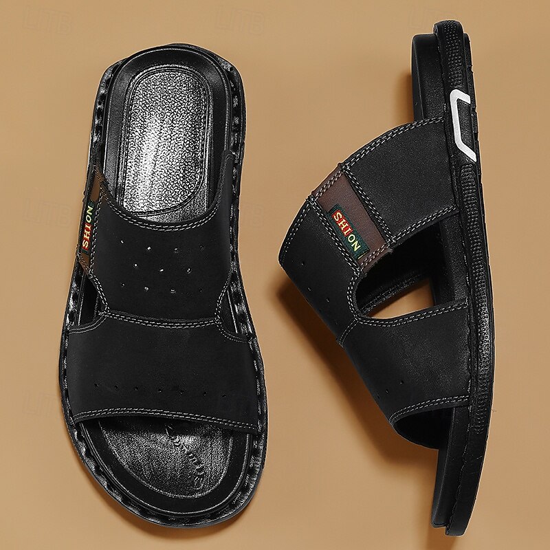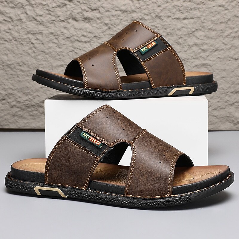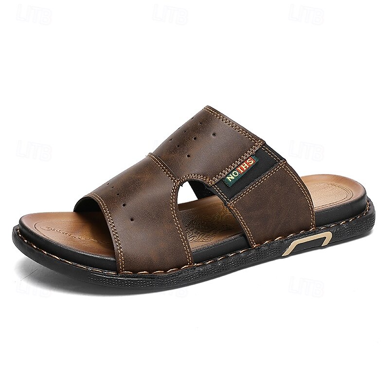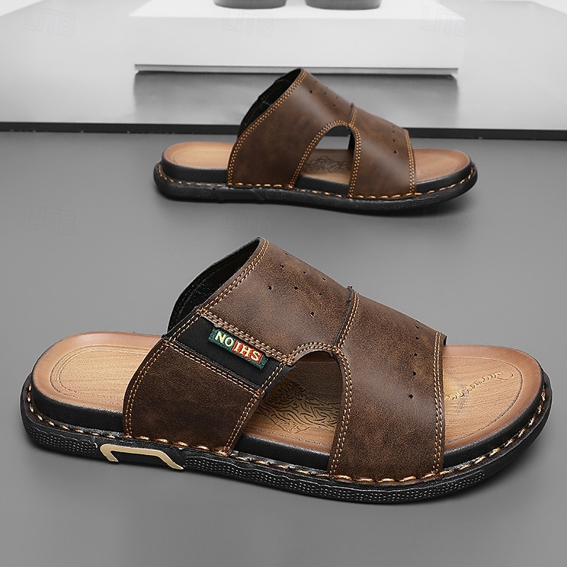 More information about Men's Brown Cutout Slip-On Sandals, Soft Faux Leather Summer Slides for Indoor Comfort, Weekend Errands and Casual Outdoor Use