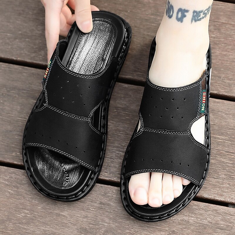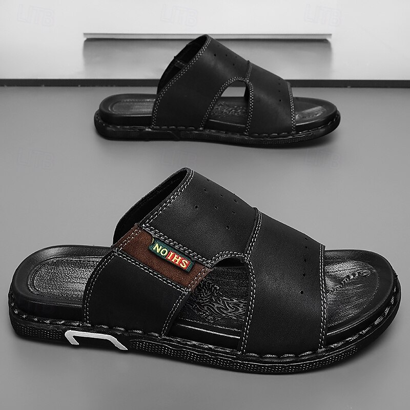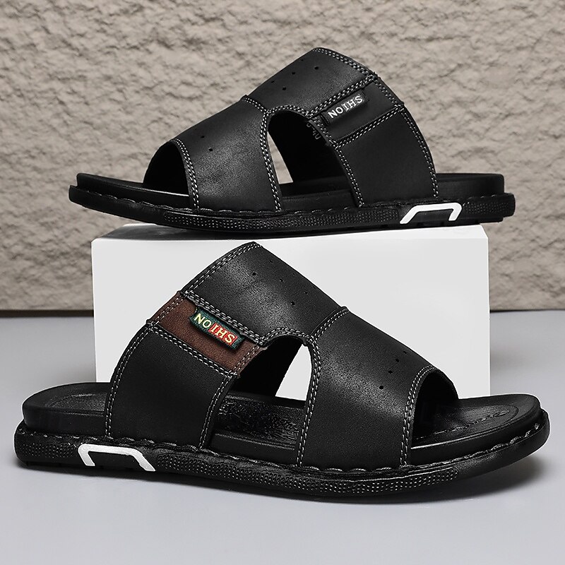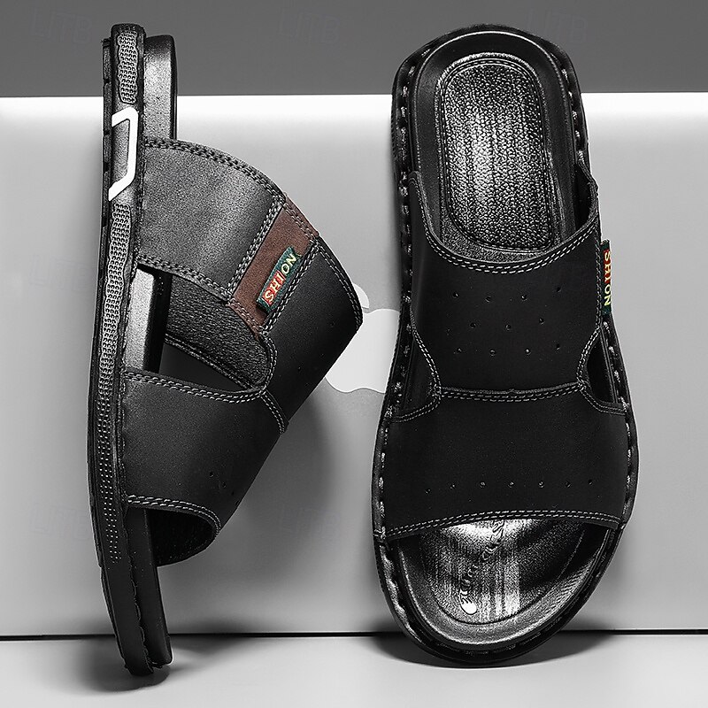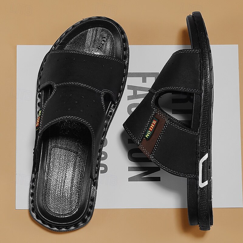 More information about Men's Brown Cutout Slip-On Sandals, Soft Faux Leather Summer Slides for Indoor Comfort, Weekend Errands and Casual Outdoor Use