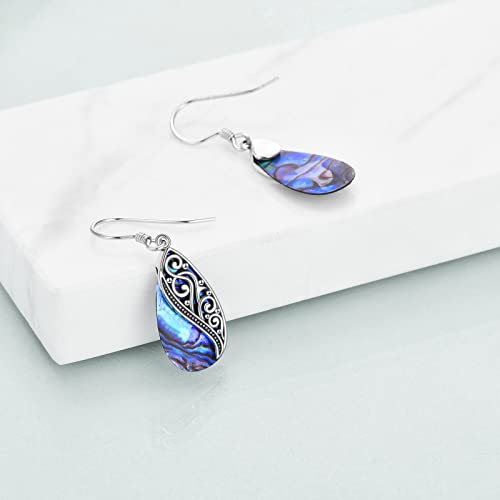 POPLYKE Abalone Shell Filigree Teardrop Drop Dangle Earrings Sterling Silver Vintage Leverback Earrings Jewelry 4