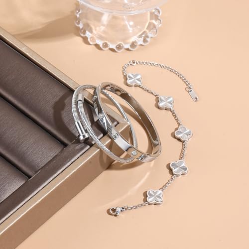 Womens Bracelet 18K Gold Plated Cuff Bangle Clover Bracelet Set for Women Four Leaf Lucky Bangle Jewelry Gift of Love 4