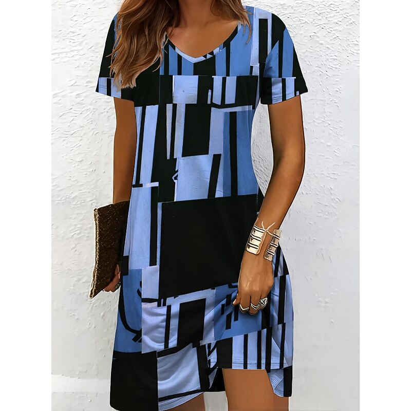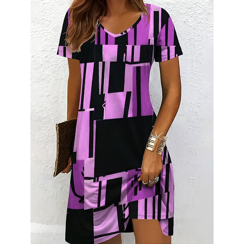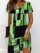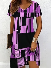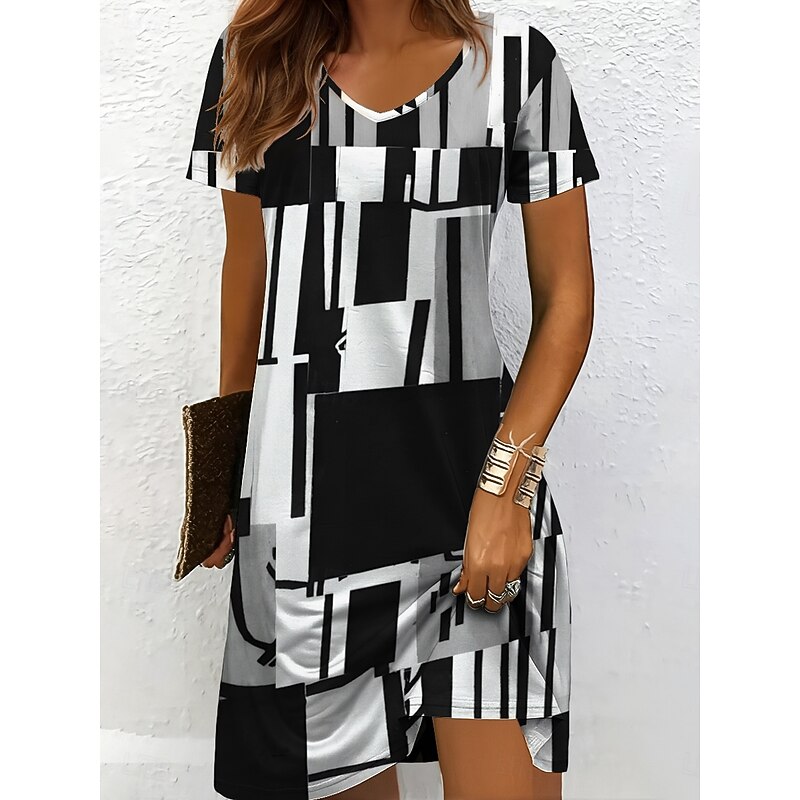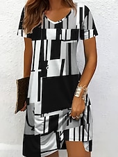 More information about Women's Mini Dress Knit Dress Casual Dress T Shirt Dress Tee Dress Sundress Vacation Casual Regular Fit Graphic Geometric Short Sleeve V Neck Black And White Yellow Pink Blue Summer Spring