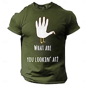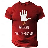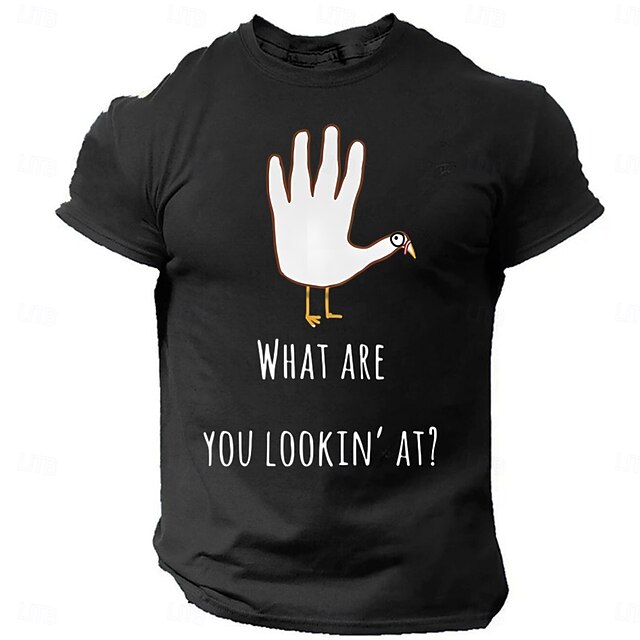 Highlights [Fabric] : Crafted from 100% soft and breathable cotton, this men's T-shirt offers comfort and durability, making it a reliable choice for both casual and everyday wear. The micro-elasticity ensures a comfortable fit that moves with you throughout the day. [Fit] : Designed with a regular fit, this tee features a classic crew neckline and short sleeves, providing a timeless and relaxed silhouette perfect for any casual setting. [Design Highlights] : This T-shirt showcases a humorous and quirky graphic design with a stylized turkey motif and playful "What are you lookin' at?" lettering on the front, adding personality and fun to your wardrobe. Available in various colors—Black, Red, Army Green, and Dark Grey—this T-shirt stands out as a versatile fashion statement. [Occasions] : Ideal for Thanksgiving and other festival occasions, this T-shirt effortlessly blends festive spirit with everyday style. Whether you're attending a family gathering or simply enjoying a relaxed day out, this tee is a perfect choice for adding a touch of humor to your outfit. [Size Range] : Available in a wide range of sizes from S to XXL, this T-shirt caters to diverse body types, ensuring a comfortable and flattering fit for adults.