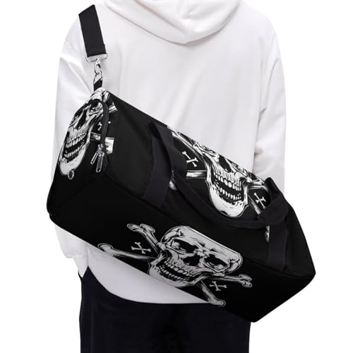Skull & Crossbones Funny Gym Bag Travel Duffel Bags Carry On Weekender Overnight Bag for Women Men 7