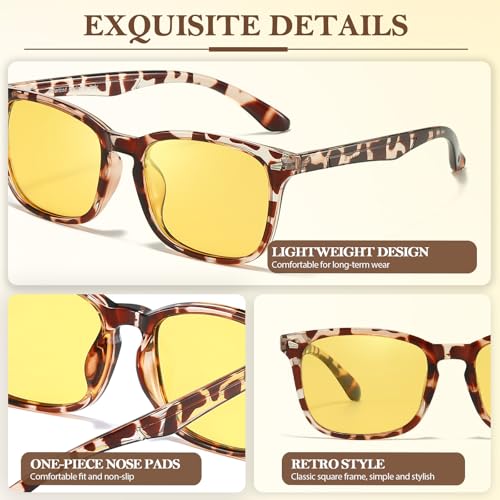 • Suitable for All Weather: Yellow-lens night driving glasses can be worn during the day as well as at night to safeguard your eyes. Get a better view at night, while playing sports, outside, or on days when it's gloomy, raining, or foggy.