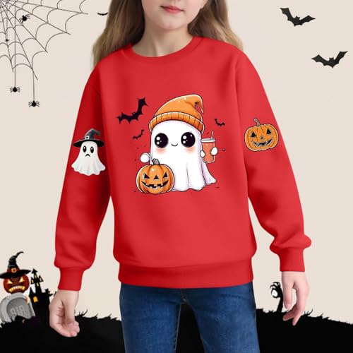HOT ! Kids Halloween Sweatshirt 2025 Funny Cute Ghost Pumpkin Graphic Sweater Long Sleeve Vintage Casual Fall Pullover Tops