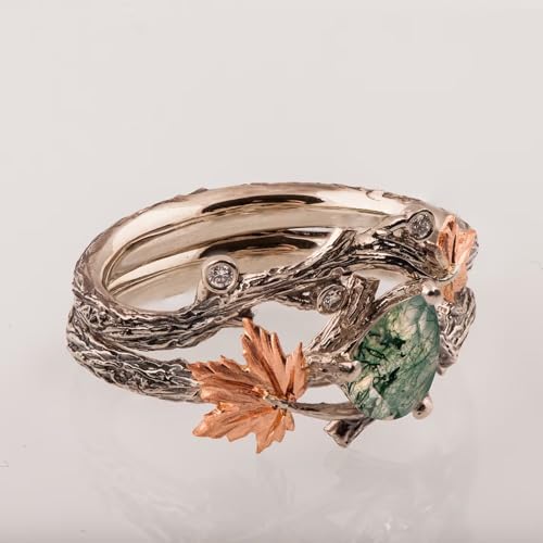 Natural Moss Agate Ring for Women 925 Sterling Silver Green Agate Ring Promise Ring with Vine Leaf Ring Engagement Wedding Jewelry Gift for Women 5