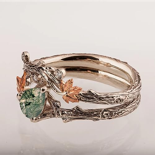 • 💖【Natural Moss Agate】Every moss agate is natural, No two moss agate stones are the same, making each one unique. The arm of the ring restores the natural color and texture of the branches to the greatest extent, suitable for all nature lovers