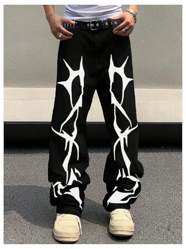 HOT ! Floerns Men's Graphic Print Jeans Wide Leg Y2k Streetwear Baggy Denim Pants
