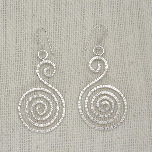 Sterling Silver Handmade Hammered Shinny White Spiral Earrings Silver S-Shape Spirals 7