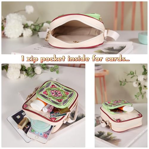 Jursccu Canvas Embroidery Cross Body Bag for Woman Phone Purse - Lightweight & Stylish Small Shoulder Bag for Everyday Use 5