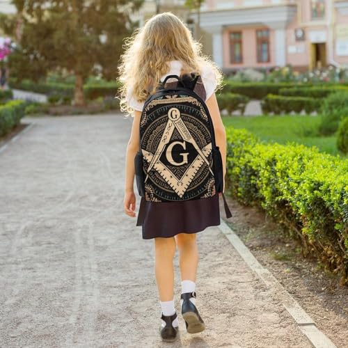 Shoulder Book Bags Anti-Theft Multipurpose Big Capacity Bookbag - Gold Freemason Freemasonry Masonic Art Travel Hiking Backpack With Smooth Zippers 1