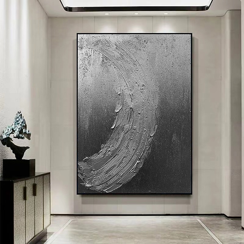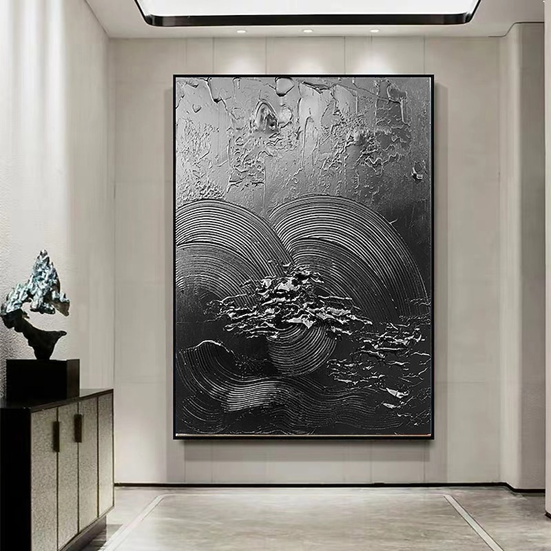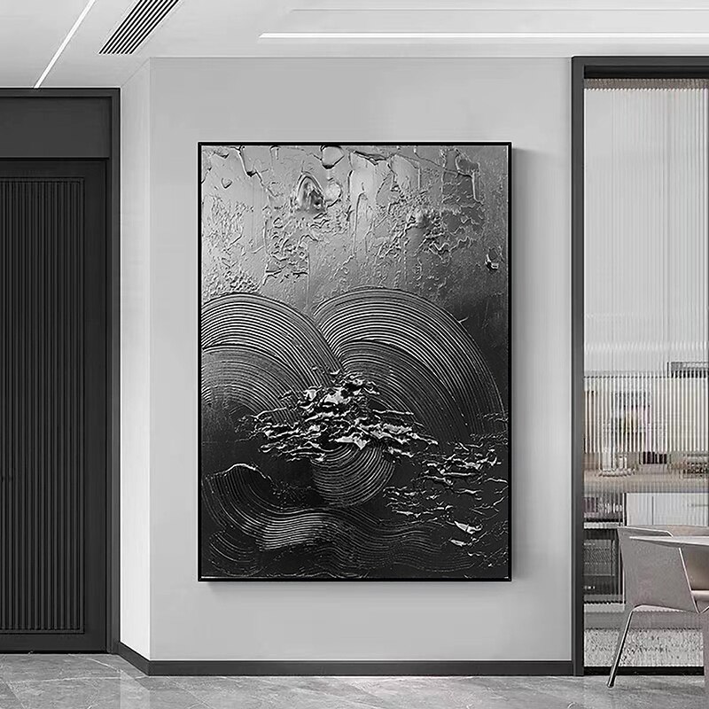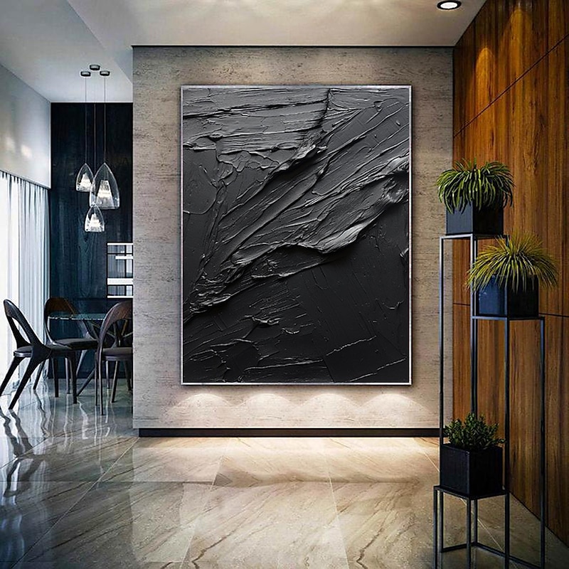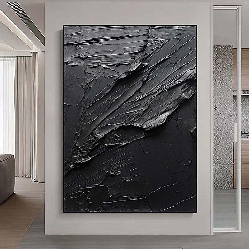 More information about Handmade Pure Black Textured painting Hand Painted Oil Painting Wall Art Large Painting Palette Knife Abstract Painting Hand-painted Acrylic Paintings Decor Rolled Canvas