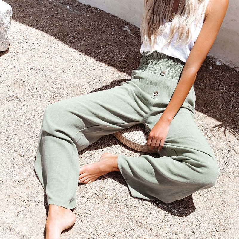More information about Women's Cotton Linen Pants Slacks Casual Full Length Natural Plain Elastic Waist Comfy Outdoor Sports & Outdoor Street Wine Navy Grey Black Summer Regular Fit