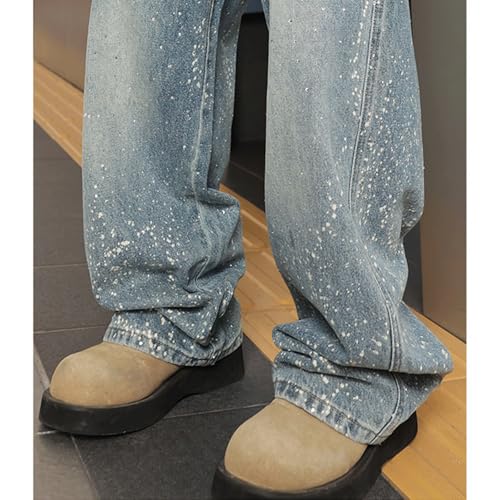 • [Features]: Rhinestone jeans men designed with loose fit and wide leg silhouette, offering both comfort and a cool hip hop streetwear appearance. Click "See More" for full size chart and detailed features to help you choose the perfect fit.