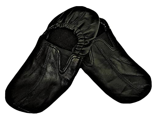 Unisex Leather Slip-On Socks, Ankle Low Cut, Bottom Fleece Lined, Black With Elastic Support 1