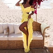 More information about Women's Long Dress Maxi Dress Vintage Dress Cocktail Dress Wedding Guest Dress Chiffon Dress Fashion Modern Vacation Holiday Going out Regular Fit Plain Sleeveless V Neck Yellow Pink Summer