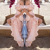 Highlights - Perfect for summer vacations - Made from lightweight polyester fabric - Sleeveless design for a comfortable and breezy feel - Retro vintage dress style - Features a trendy split and ruffle design - Flattering V-neckline adds a touch of elegance
