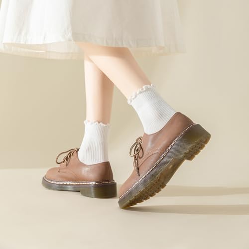 6 Pairs Ruffle Socks for Women Girls,Casual Cute Ankle Socks Breathable Knit Cotton Warm Soft Frilly Crew Socks 5