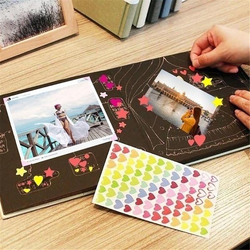 14. Comes with bonus DIY accessories including postcards, self-adhesive photo corners, and colored pens.