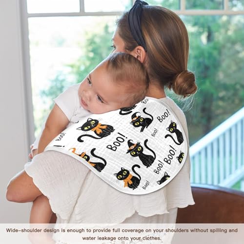 2 Pack Muslin Burp Cloths Halloween Boo Cat White Cotton Baby Burp Cloths Extra Absorbent and Soft Spit Up Rags for Newborn Boys Girls, Large 22" x 11" 5