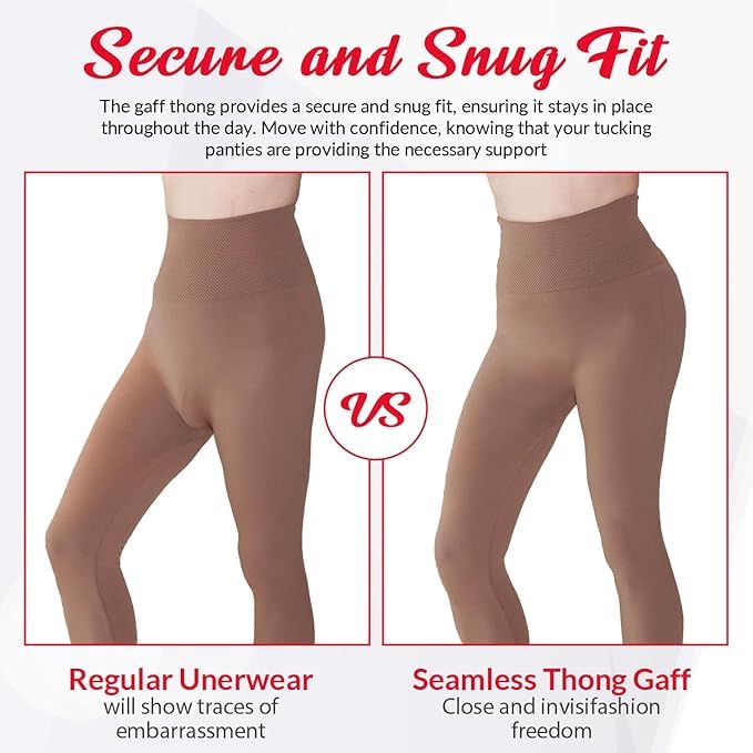 • Secure and Snug Fit: The gaff thong provides a secure and snug fit, ensuring it stays in place throughout the day. Move with confidence, knowing that your tucking panties are providing the necessary support.