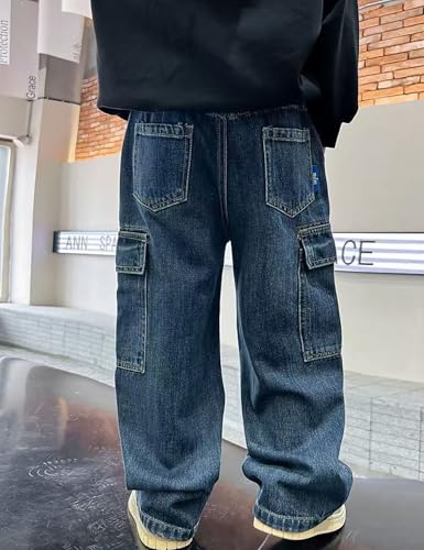 • 【Match】 boys baggy jeans pants elastic waist jeans grunge cargo pants straight leg jeans for kids pair with anything in your closet, such as crop tops, basis t-shirts, cool jackets, hoodies, sweatshirt.