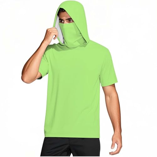 Men's Hooded Sun Shirts Short Sleeve Pullover UPF 50+ Sun Protection Hoodies SPF T Shirts UV Rash Guard Workout Tops 5
