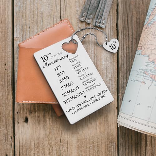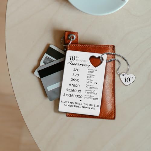 HOT ! TRCENDE 10 Year 10th Wedding Anniversary Wallet Card Gifts for Him Her Men Husband Wife Women, Engraved Metal Wallet Insert Card Romantic Gifts XCD42