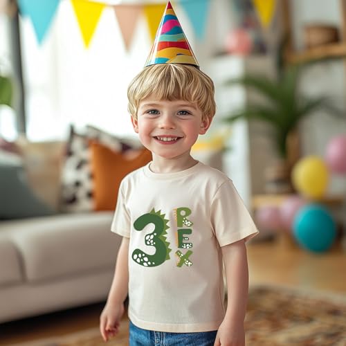 • Unique Design: The kid's birthday shirts feature short sleeves and a classic round neckline, making them easy to put on and take off. Combine the cute dinosaur shape with your child's age to create a one-of-a-kind birthday announcement