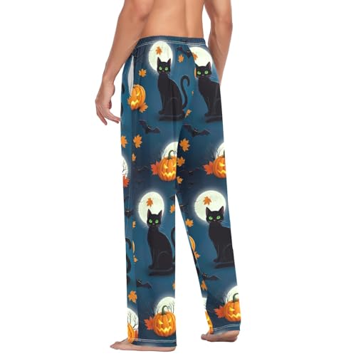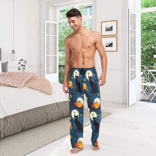 HOT ! Men's Cotton Pajama Bottoms Sleep Pants with Pockets Soft Pajama Pants, Halloween Black Cat Pumpkin