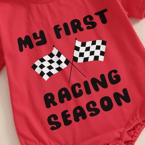 KMBANGI My First Racing Season Outfit Newborn Baby Boy Girl Short Sleeve Race Car Checkered Flag Romper Infant Clothing 0-18M 4