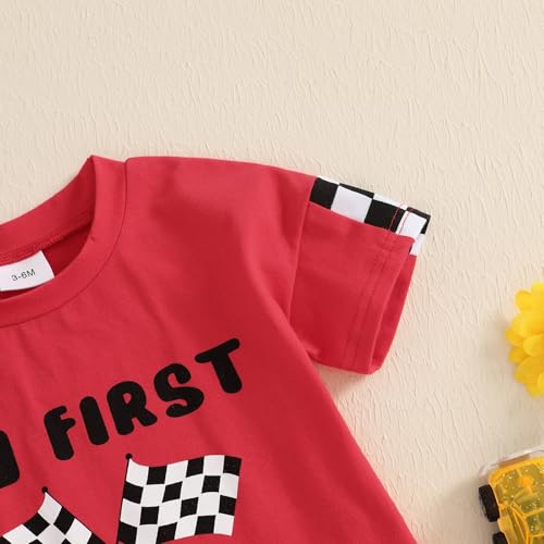 KMBANGI My First Racing Season Outfit Newborn Baby Boy Girl Short Sleeve Race Car Checkered Flag Romper Infant Clothing 0-18M 6