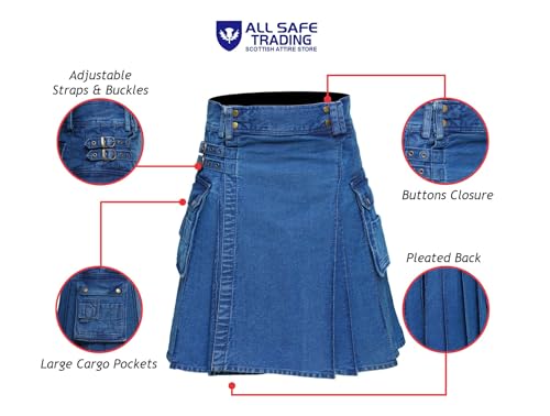 • Versatile Style: Ideal for Highland gatherings, festivals, or everyday wear, this authentic kilt features brass buttons and durable denim fabric that embodies Scottish pride.