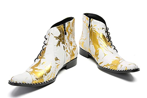 Santimon Men's Chelsea Cowboy Boots - Western Lace-Up Ankle Boots for Urban Parties/Western Weddings, Premium Leather Dress-Casual Boots with Ornamental Stitching 7