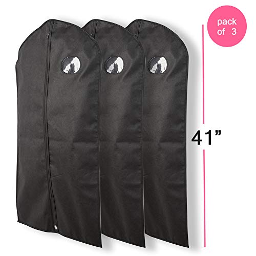 Pack of 3, 41 Inches Black Hanging Breathable Suit Garment Bags for Mens Closet,Jacket,Short Dress,Suit Travel, protector or Storage 3