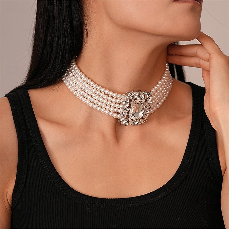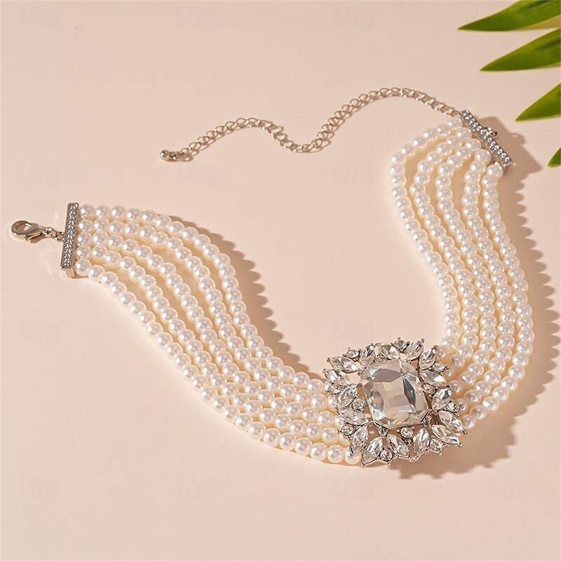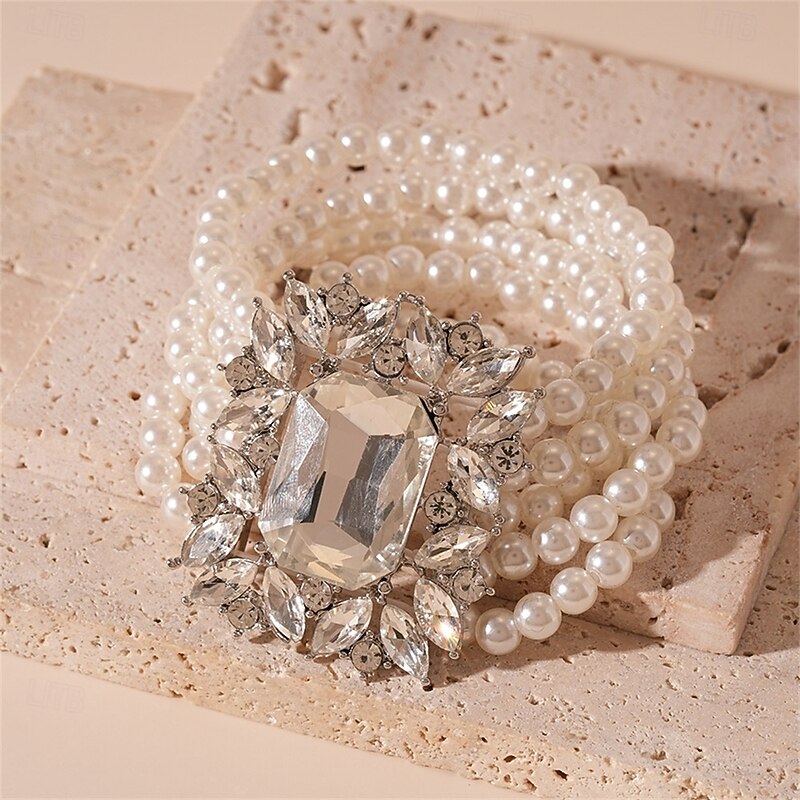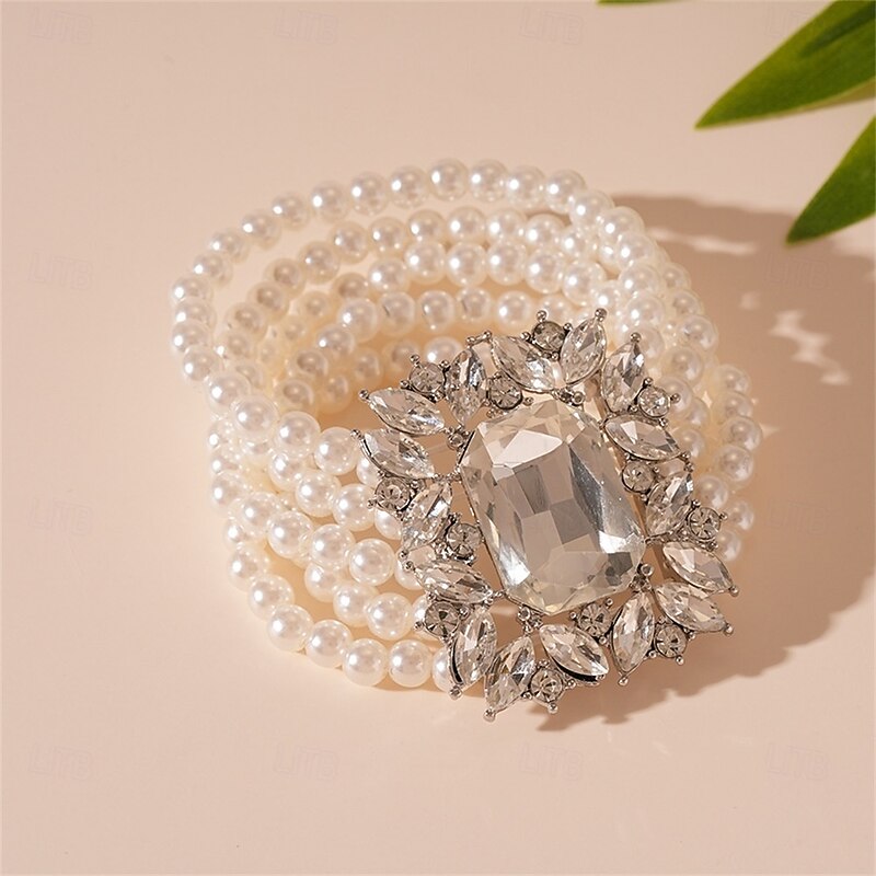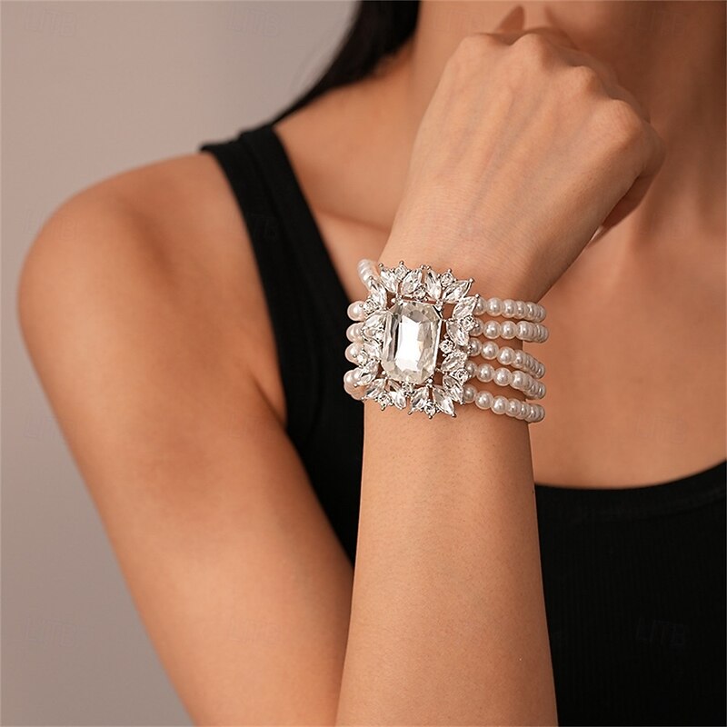 More information about Jewelry Set Three-piece Suit Silver Cubic Zirconia Imitation Pearl Silver 1 Necklace 1 Bracelet Earrings Women's Elegant Vintage Fashion Cute Vintage Style Classic Geometric Jewelry Set For Wedding