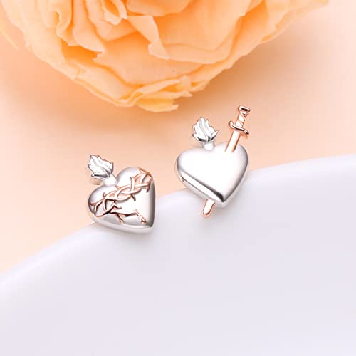 DAOCHONG Sterling Silver Sacred Heart & Immaculate Heart of Mary Mismatched Earring Studs - Christian Jewelry for Women & Men - Easter Gift 6
