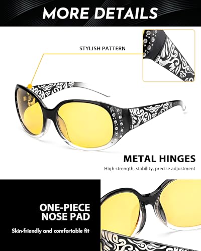 SODQW Night Vision Glasses for Women,Polarized Yellow Anti Glare Glasses with Diamond Accents for Night Driving