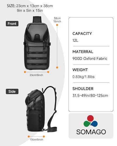 HOT ! Somago Sling Backpack with USB Charging Port Water-Resistant Tactical Backpack Crossbody Chest Bag with Anti-theft Pocket