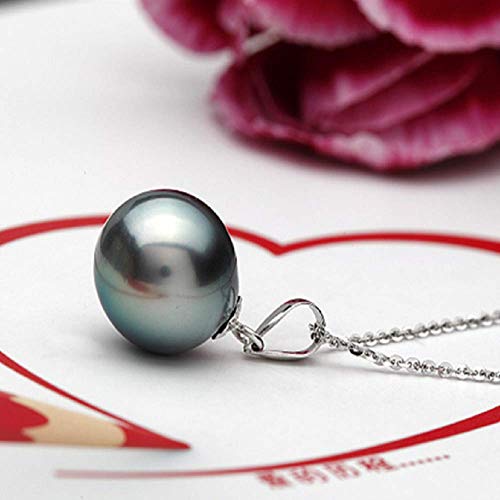 Lzz 925 Sterling Silver Tahitian Nanhai Freshwater Cultured Black Pearl Pendant Necklace - 9-10mm Round Pearl Ladies Necklace 5