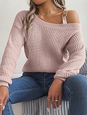 More information about Women's Sweater Casual Soft Pure Color Chunky One Shoulder Knitted Long Sleeve Regular Tops Knit Outdoor Daily Weekend White Pink Fall Winter
