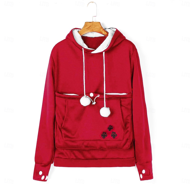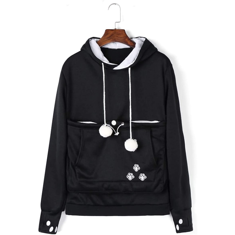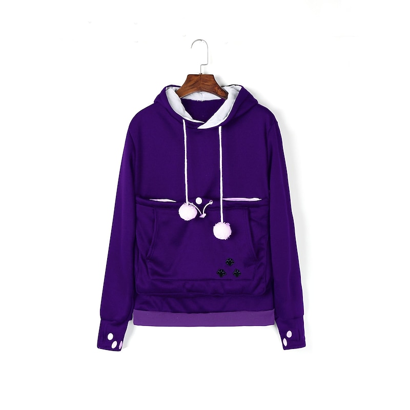 Highlights Cotton,Fleece Please ignore the expected date, it usually takes about 7-10 days. Material: Cotton, polyster and fleece, soft, warm and comfortable It may one size smaller, if you want loose fit, go up a size or two size, and check the size chart before place an order Role:while resting at home, you can interact with the pet, to enhance the feelings, big pockets can also put cell phone, ipad, or snacks. Home essential goods! You'll look cute yourself with the hoodie's ears and paw print design,A perfect gift for pet lovers, and it is also a great christmas gift Suitable for pets:dogs, cats, small animals. Small pets will love snuggling up in its fur-lined pouch