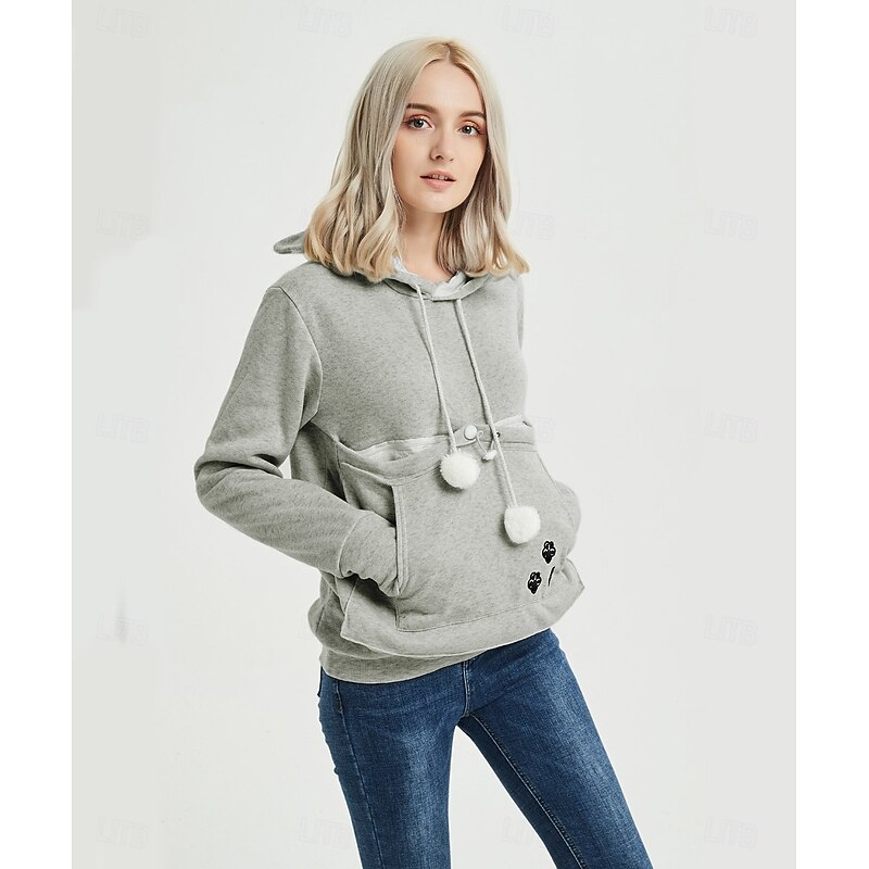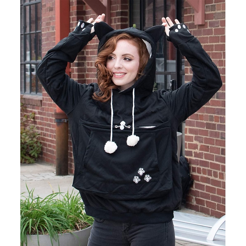 More information about Women's Big Kangaroo Pouch Hoodies,Cute Cat Ear Carriers Pullover,Pet Cat Dog Holder Cuddle Sweatshirt Deep Blue