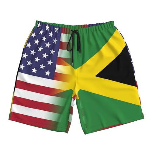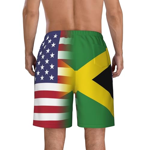 American Flag and Jamaican Flag Mens Summer Seabeach Casual Shorts Seaside Surfing Swim Trunks Beach Pants 1