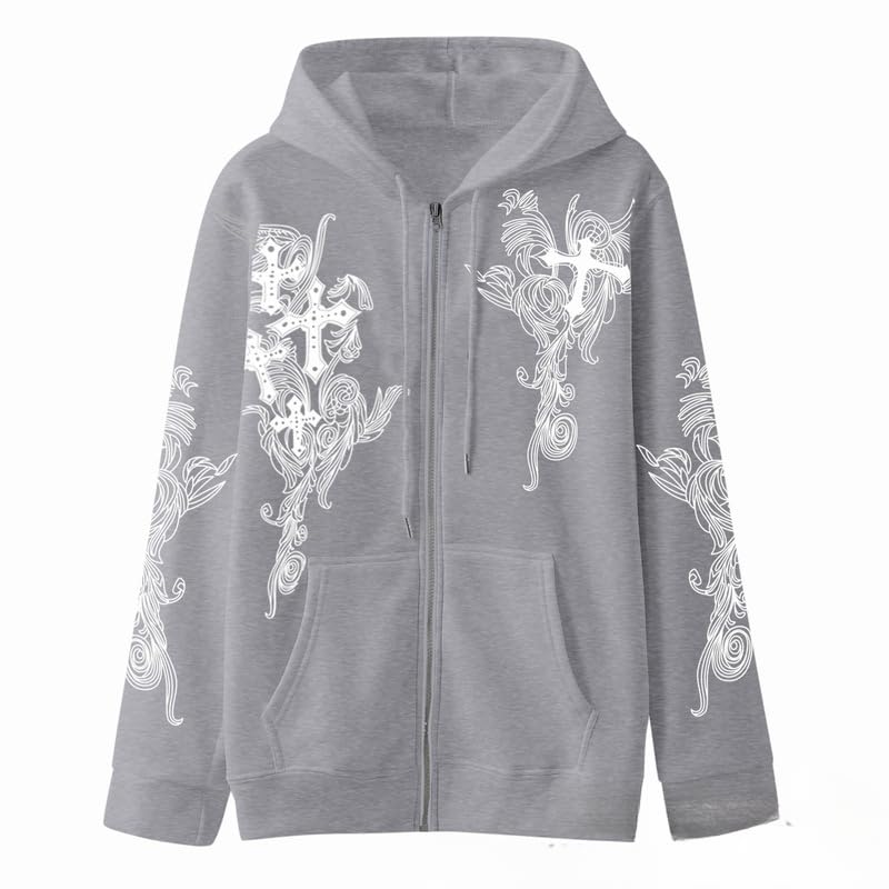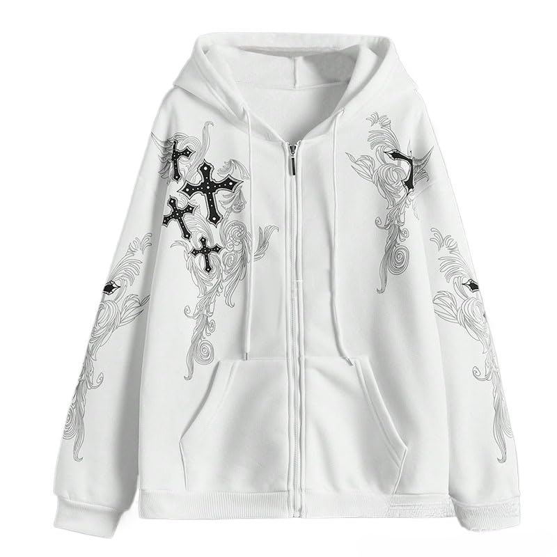 Women Men Y2K Zip Up Oversized Hoodie Gothic cross Graphic Emo Grunge Baggy Fleece Jacket 90s Punk Streetwear
