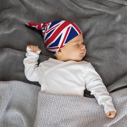 Newborn Baby Hat, British Flag Print Soft Top Knot Beanie Cap, Cute Baby Headwear for 0-6 Months Black 1